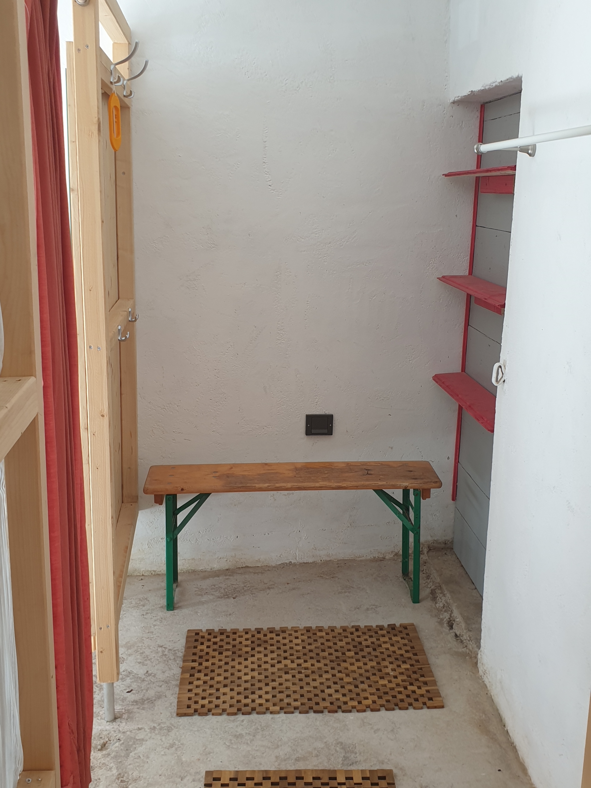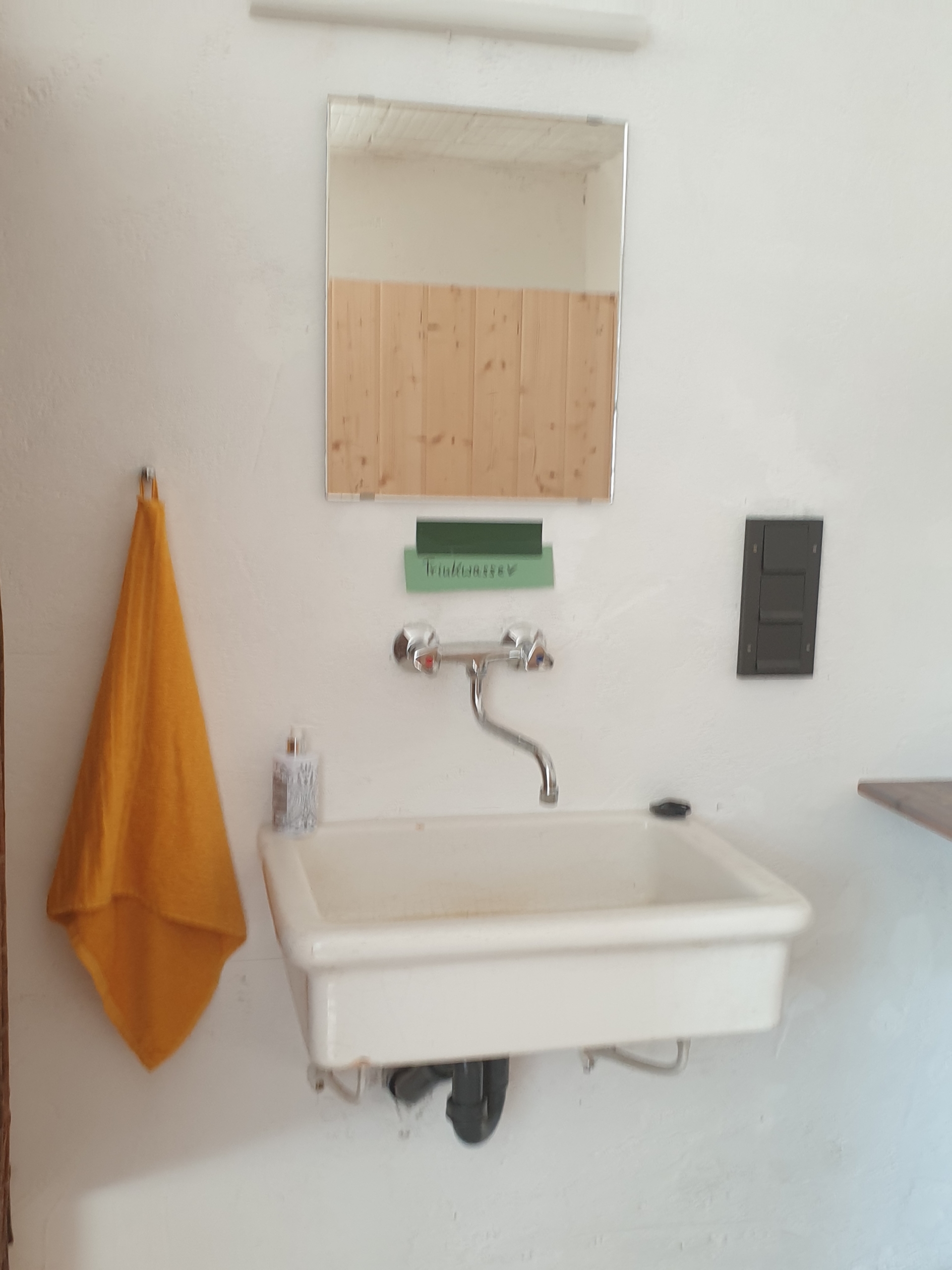Hier stehen Ihnen eine Warmwasserdusche, WC und Waschbecken zur Verfügung. An der ehemaligen Pfedetränke können Sie gleich Ihre Kleidung und Schuhel reinigen und trocknen.